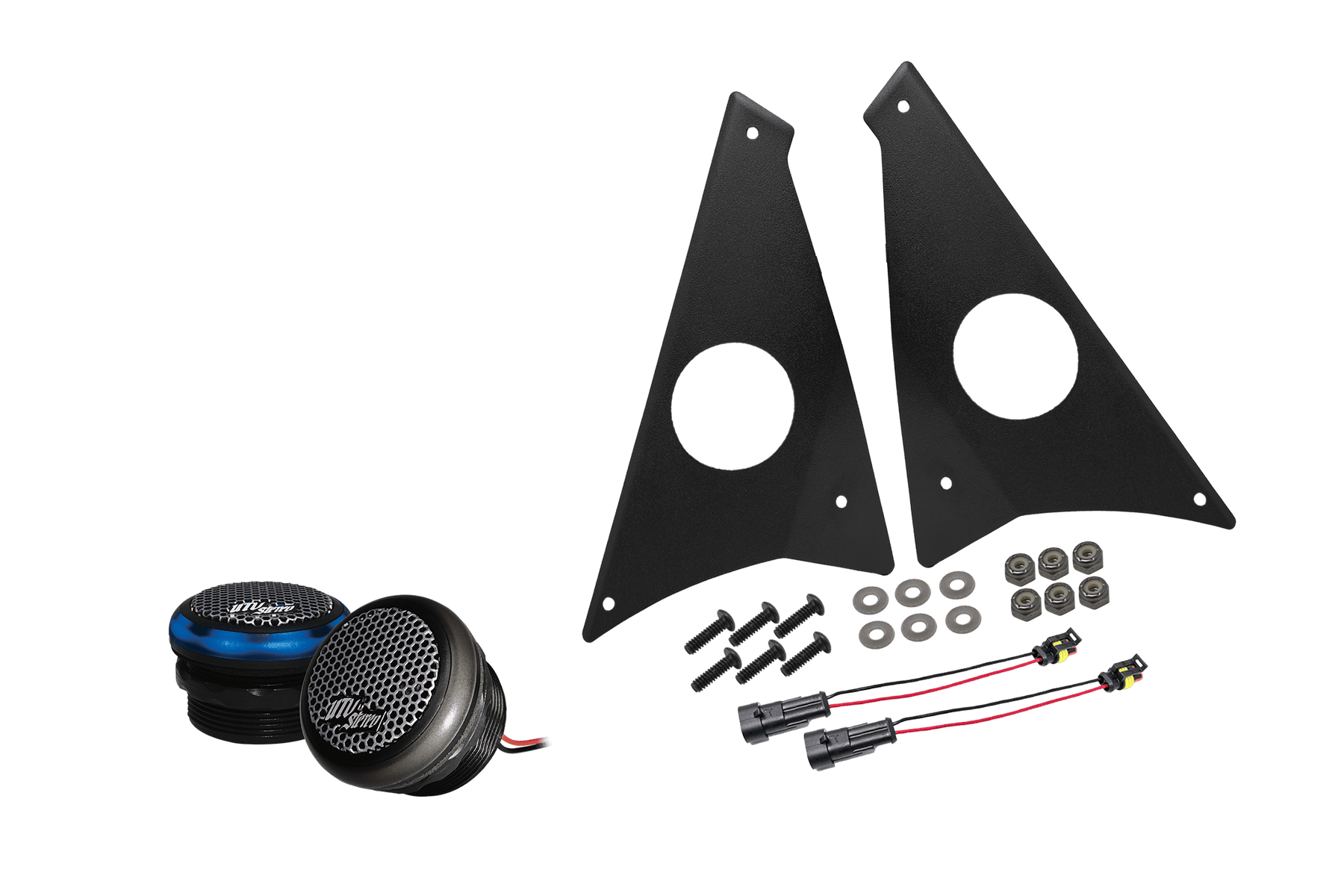The UTVS Front Speaker Adapter Kit offers a simplified installation process, robust mounting solution, and plug-and-play convenience for integrating our UTVS Signature Series 6.5" Speakers into your vehicle.